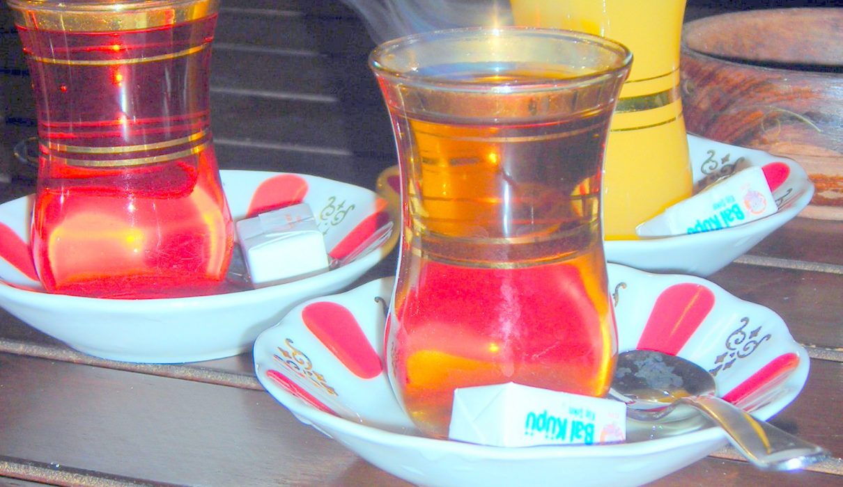 In Turkey we had dark Turkish coffee and sweet tasting tea (cay) in fruity flavours of apple, peach and mango.