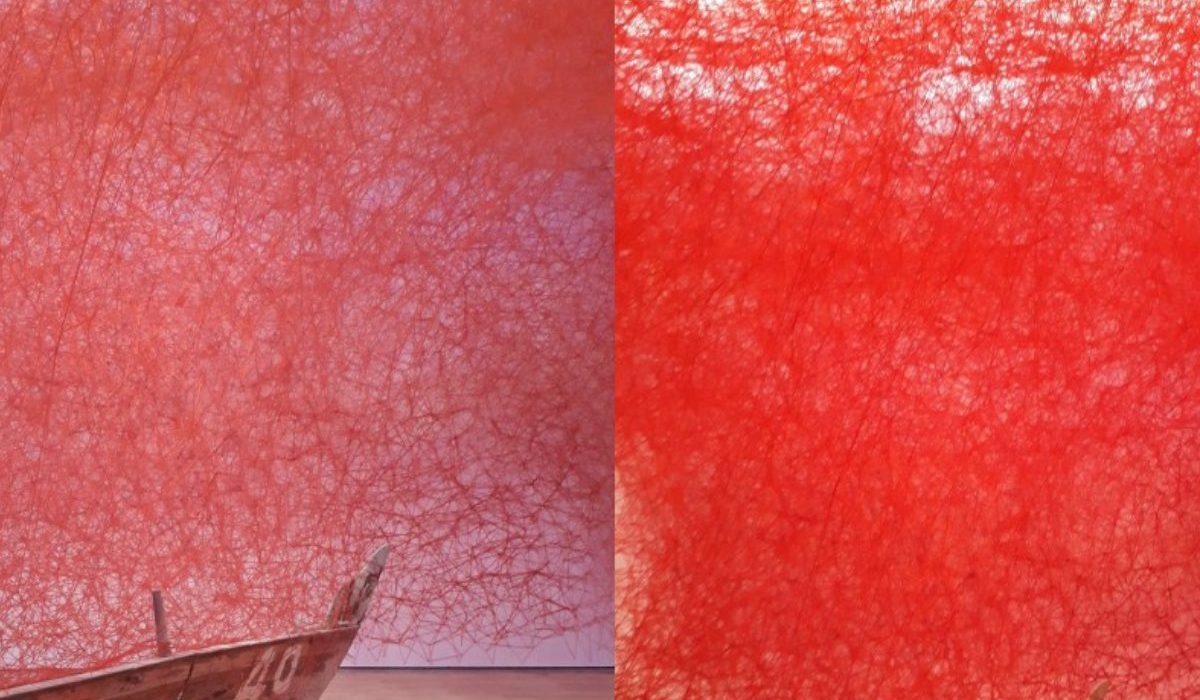 In Departure, Shiota, has used two old boats sourced locally in Dubai. She says, the boat is a symbol of memories and emotions attached to people in the emirate. Colour Red is a metaphor for relationships. The thread creates a sea of human connections and through Departure she wanted to depict how we are all connected in one way or the other.