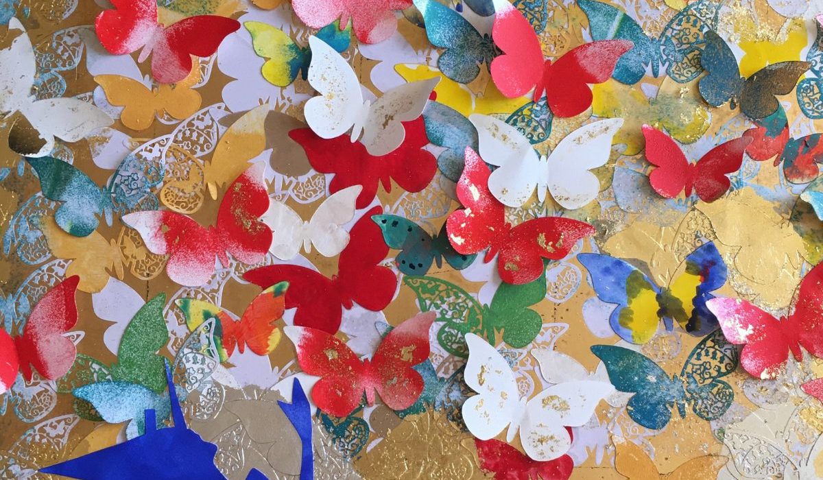 The artworks strike a nostalgic note in viewers even as the vibrant hues and carefree butterflies invoke a sense of joy and bliss. The wooden-nosed Pinocchio has had a strong inspiration over Antonio’s life. Every time he re-visits the story, he says, he finds a new perspective, which is why the figure of Pinocchio has been prevalent in Antonio’s work for over two decades.