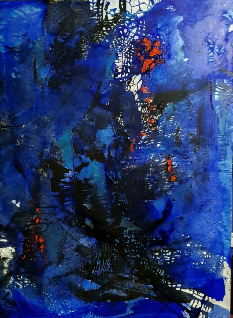 Rahul Inamdar calls himself a cross over artist. Armed with an engineering degree and an MBA and a decade of corporate career in India, Inamdar gave it all up in 2007 to embrace working only on his canvas. Inspiration and reflection stuck while viewing Claude Monet’s Waterlilies at Musée de l’Orangerie, Paris. What followed were years of enquiry into several art forms and learning from art maestros. Now surrendering to intuition, he lets the moment take over as colours emerge through his painting. He was awarded the best artist in World Art 2021.