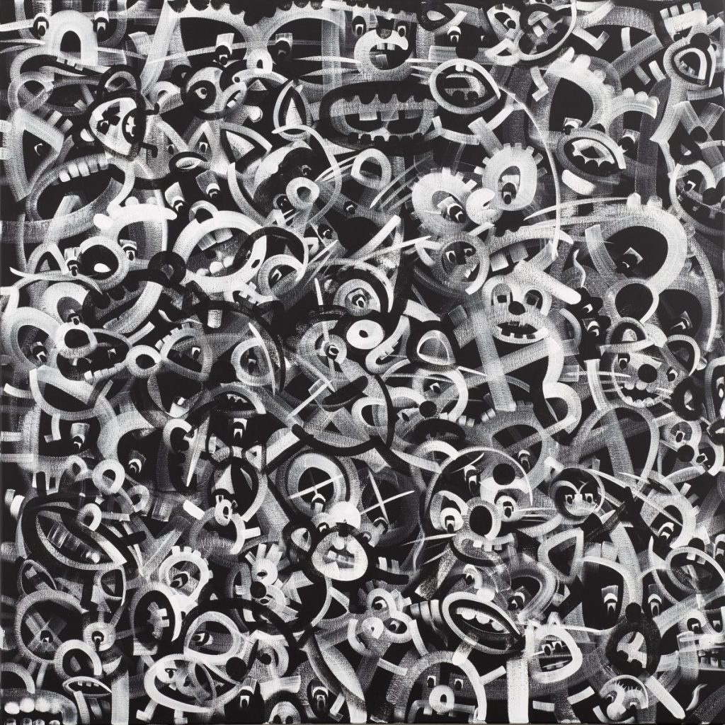 A partnership built on, in their own words, “friendship, communication, respect and trust”, Robbie and Ed, say they immediately bonded over a love of abstract art, as well as music, which encouraged them to create together as an artist duo. In five years, they have created works with an aesthetic deeply rooted in a nostalgia for the 1990s music scene: vibrant, euphoric and pulsating with life.