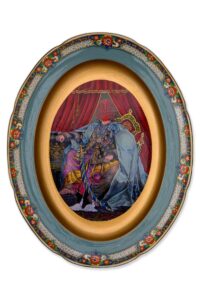 Pakistani artist Adeela Suleman, represented by Canvas Gallery exhibits tapestry, sculptures and ceramics. Notable among them are A Princely Redemption, a stunning hand painted ceramic plate with enamel paint and an applique artwork showcasing vibrant quilts with motifs native to her region.