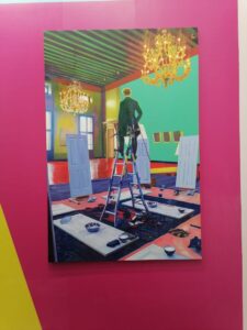 Indonesian artist Zico Albaiquni’s neon coloured work follows some of the recurring themes in his works showing the colonial legacy of Indonesia, the tension between traditional culture and modernity and the social and environmental issues of contemporary Indonesia.